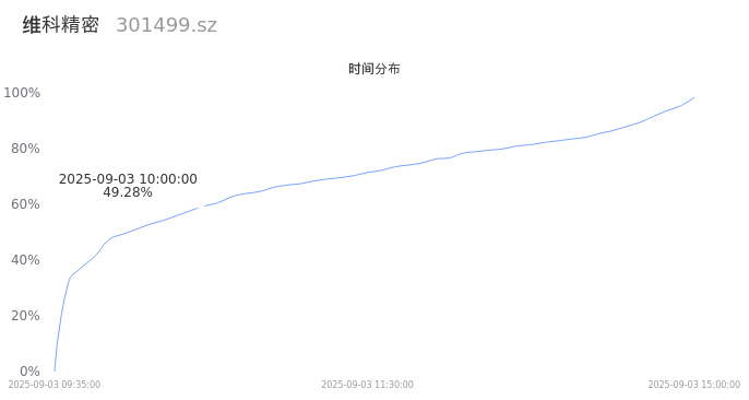 301499维科精密2025年09月03日成交5.03万手,成交金额1.42亿,相较昨日缩量2.17万手,换手率14.54%,成交活跃。