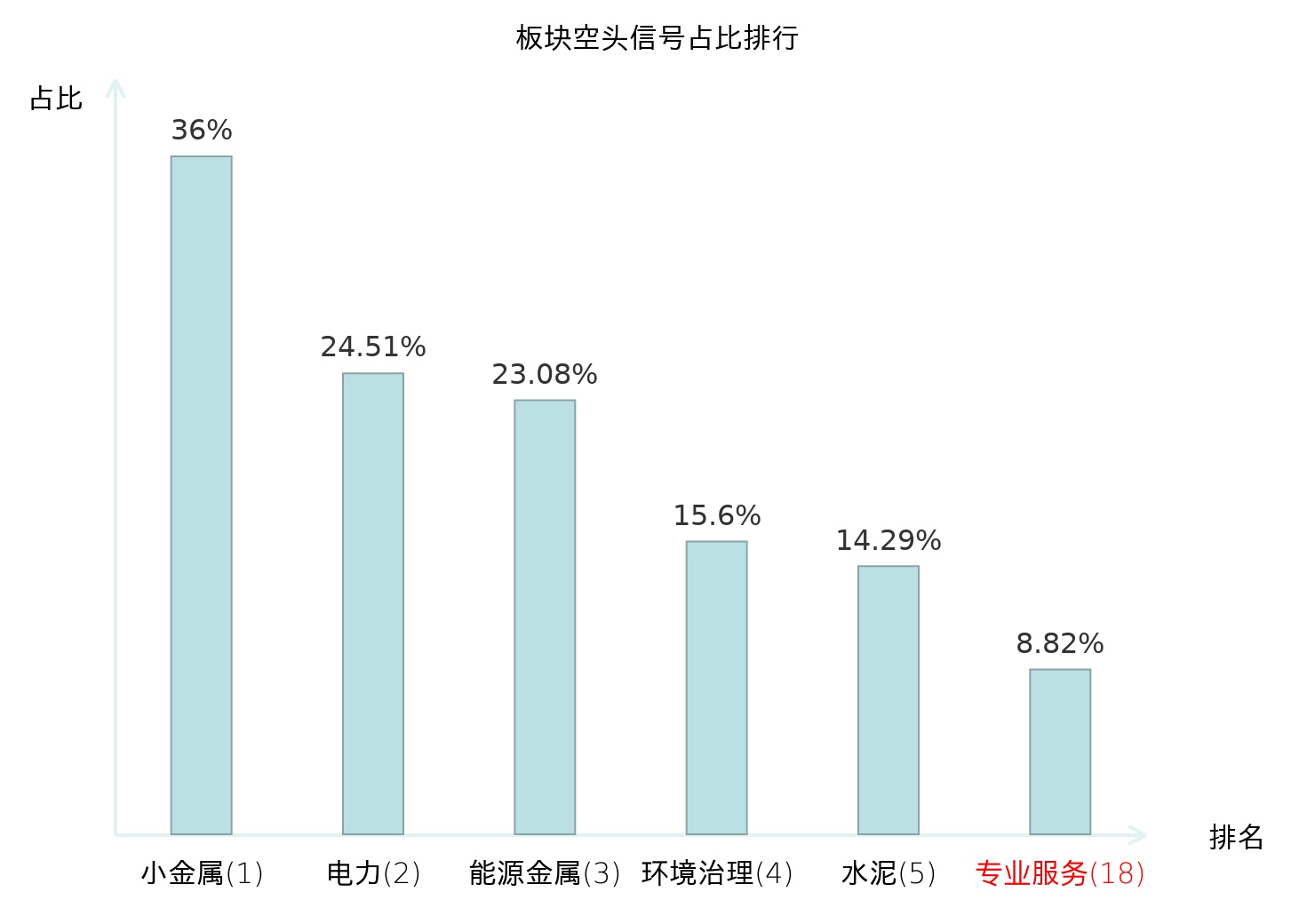 全市场所有行业板块中主力空头信号占比排名中,小金属板块位居第一。计算机设备板块名次提升最快,较昨日上升113位。