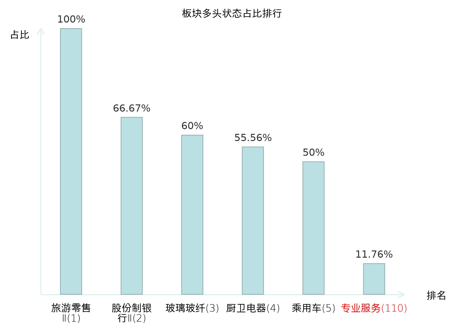 全市场所有行业板块中主力多头状态占比排名中,旅游零售Ⅱ板块位居第一。航天装备Ⅱ板块名次提升最快,较昨日上升91位。