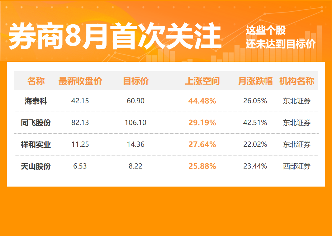 海泰科的最大涨幅空间超44%,该股最新收盘价报42.15元,东北证券在8月28日发布的研报中给出了60.9元的目标价。