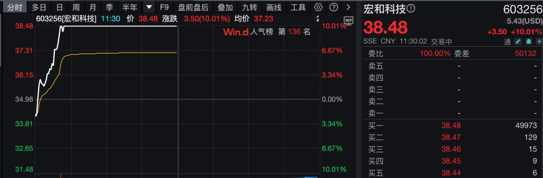 玻璃玻纤概念早间强势上攻,板块指数放量大涨逾4%。宏和科技从跌逾2%直线拉升,仅约10分钟就封死涨停板,半日成交超昨日全天成交。中材科技、菲利华、国际复材等涨幅居前。
