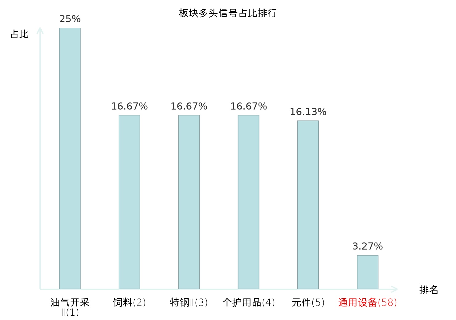 全市场所有行业板块中主力多头信号占比排名中,油气开采Ⅱ板块位居第一。个护用品板块名次提升最快,较昨日上升112位。