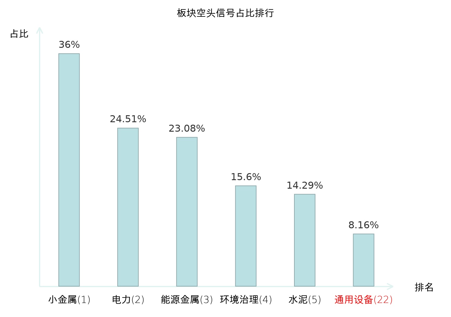 全市场所有行业板块中主力空头信号占比排名中,小金属板块位居第一。计算机设备板块名次提升最快,较昨日上升113位。