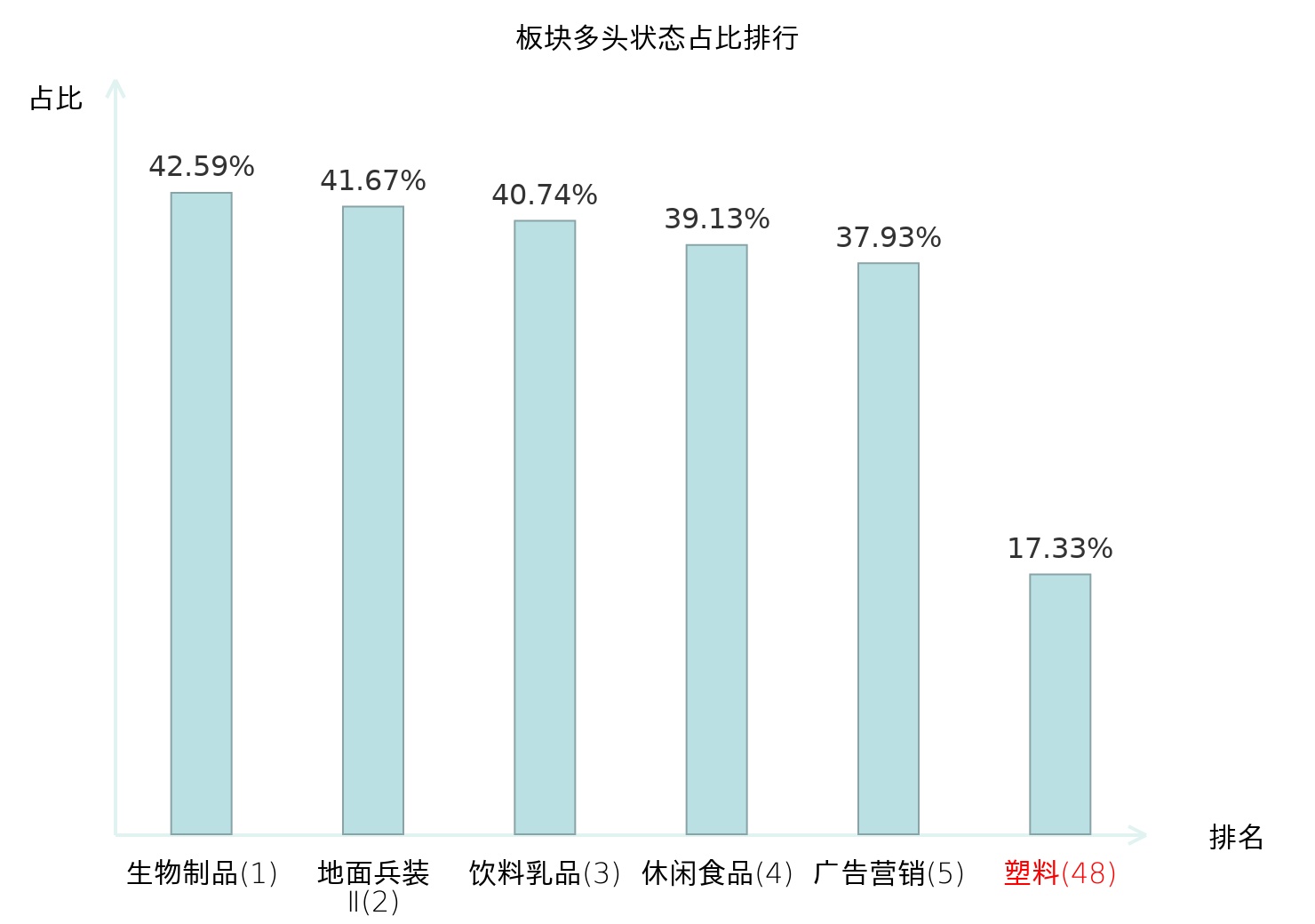 全市场所有行业板块中主力多头状态占比排名中,生物制品板块位居第一。黑色家电板块名次提升最快,较昨日上升65位。