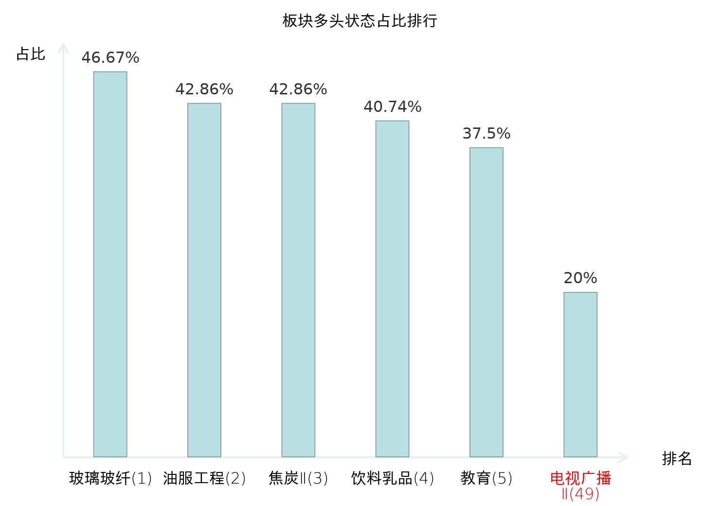 从主力宝信号数据分析,无线传媒所属的电视广播Ⅱ板块中共有3只股票处于主力多头状态,主力多头状态占比在全行业中排名第49位,较昨日上升8位,排名上升表明主力对板块的看多意愿增强。全市场所有行业板块中主力多头状态占比排名中,玻璃玻纤板块位居第一;航空机场板块名次提升最快,较昨日上升43位。这些变动反映了主力资金在不同行业间的偏好调整,为投资者提供了市场趋势的重要参考。
