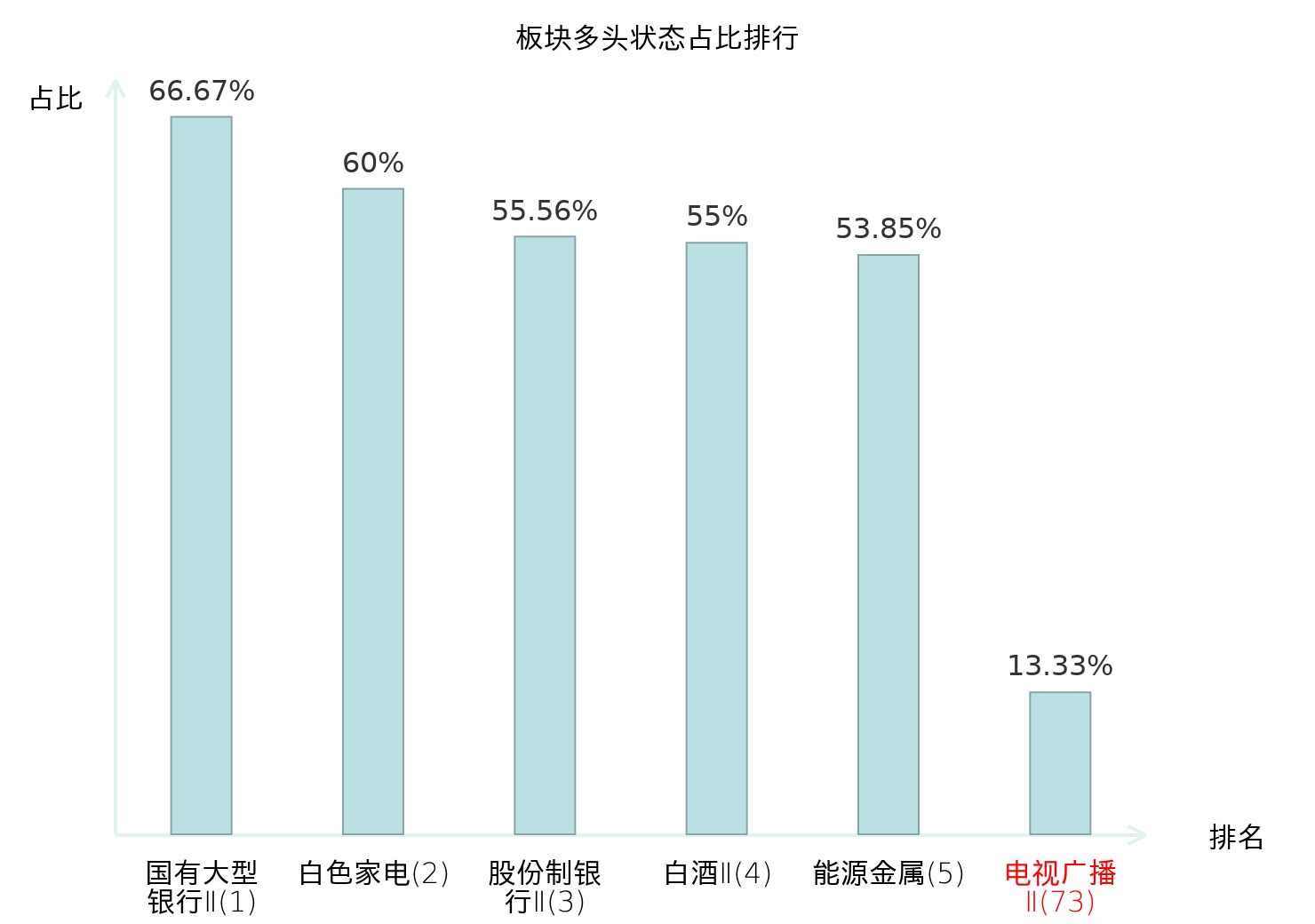从主力宝信号数据分析,无线传媒所属的电视广播Ⅱ板块中共2只股票处于主力多头状态,主力多头状态占比在全行业中排名第73位,较昨日下降4位。较高的排名表明主力对于该板块整体看多意愿较强,而此次排名下降可能反映了主力对该板块态度的微调。全市场所有行业板块中,国有大型银行Ⅱ板块的主力多头状态占比最高,位居第一;林业Ⅱ板块名次提升最快,较昨日上升99位。这些变动揭示了不同行业间主力资金动向的结构性差异,为投资者评估板块相对吸引力和潜在趋势提供了客观依据。
