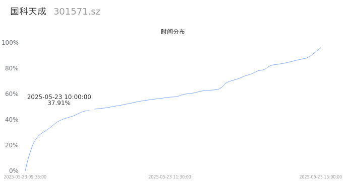 301571国科天成2025年05月23日成交14.61万手,成交金额7.45亿,相较昨日放量2.23万手,换手率40.71%,成交活跃。