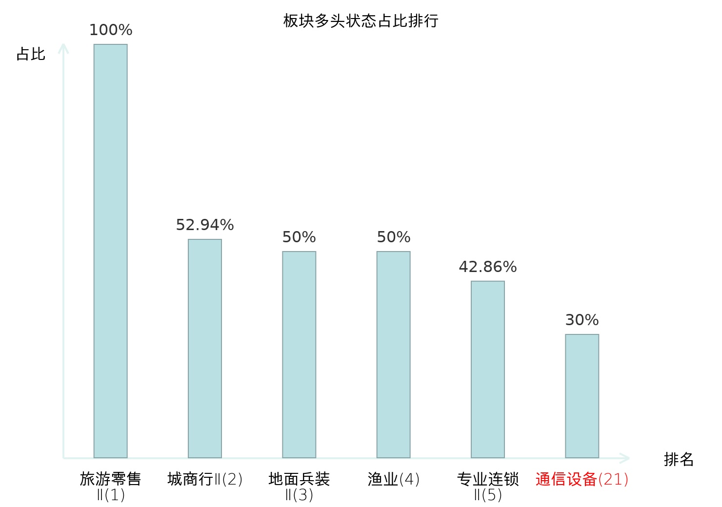 从主力宝信号数据分析,美信科技所属的通信设备板块中共27只股票处于主力多头状态,主力多头状态占比在全行业中排名第21位,较昨日上升2位。排名上升表明主力对于该板块整体看多意愿增强,为投资者提供了一个积极的市场信号。全市场所有行业板块中,旅游零售Ⅱ板块的主力多头状态占比最高,位居第一;旅游及景区板块名次提升最快,较昨日上升69位。这些变动揭示了不同行业间主力资金动向的趋势,为投资者判断市场情绪和投资机会提供了重要参考。