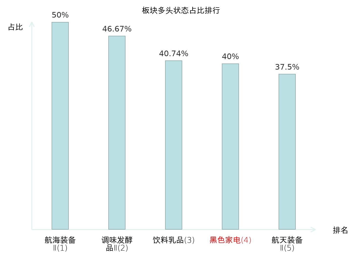 全市场所有行业板块中主力多头状态占比排名中,航海装备Ⅱ板块位居第一。航海装备Ⅱ板块名次提升最快,较昨日上升99位。