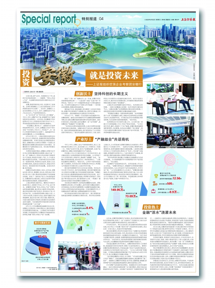 在这样的背景下,安徽正成为极具吸引力的投资热土和创业热土。“十四五”以来,长鑫存储器晶圆制造基地、大众科技研发中心、合肥国显8.6代AMOLED显示面板生产线等一大批百亿级的重大项目落地实施,科技型中小企业数量增长超过3.9倍。