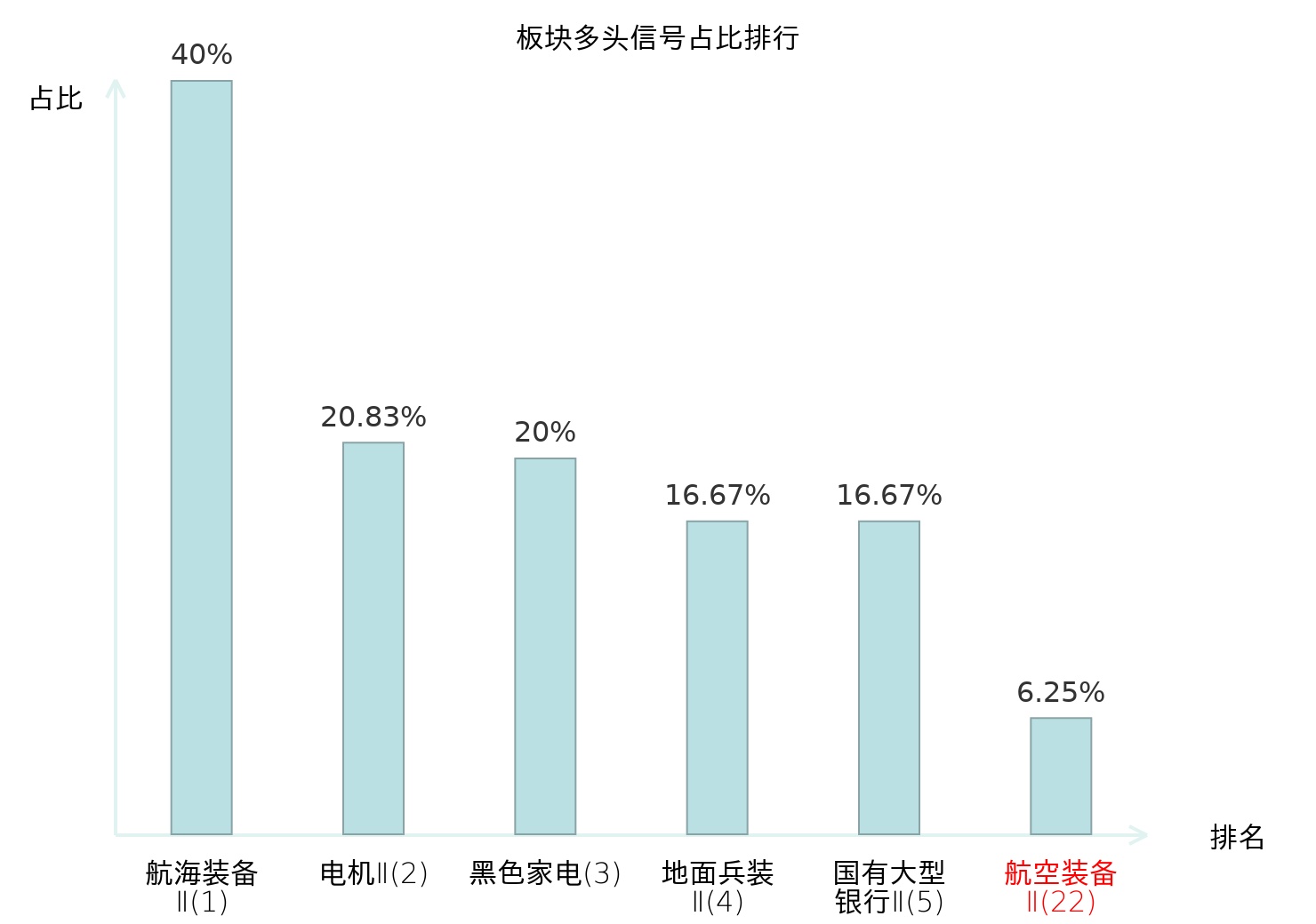 全市场所有行业板块中主力多头信号占比排名中,航海装备Ⅱ板块位居第一。国有大型银行Ⅱ板块名次提升最快,较昨日上升119位。