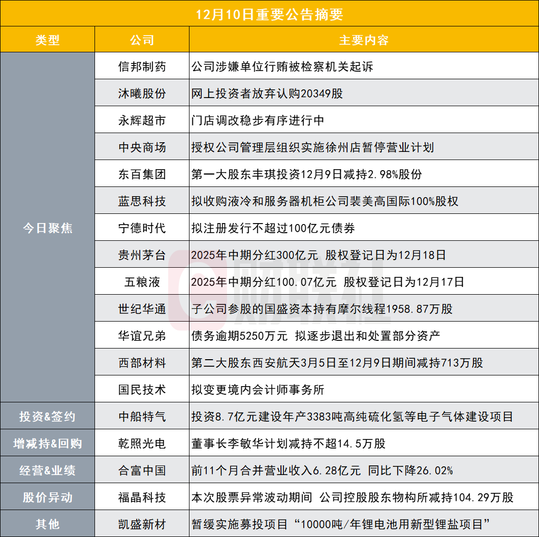 【贵州茅台:2025年中期分红300亿元 股权登记日为12月18日】