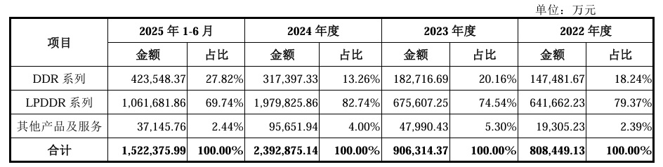 公司产品覆盖DDR、LPDDR两大主流系列,各系列均能提供当前市场主流的第四代、第五代产品。公司可结合不同产品的应用特点和客户需求,提供DRAM晶圆、DRAM芯片、DRAM模组等多元化产品方案,其中DRAM芯片是报告期内公司出货及销售的主要产品类型。