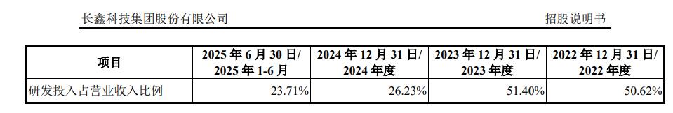 2025年上半年,长鑫科技研发费用率达23.71%,超过同期行业平均值10.37%,也明显高于国际DRAM巨头三星电子、SK海力士、美光同期的研发费用率11.74%、7.39%、10.66%。