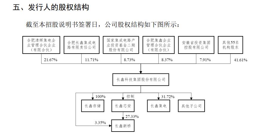 长鑫科技股东阵容强大,合肥清辉集电企业管理合伙企业持股21.67%为第一大股东,大基金二期、安徽省投、阿里、腾讯、招银国际、人保资本、建信金融、国调基金、君联资本、小米产投等均位列股东行列。公司目前无控股股东。
