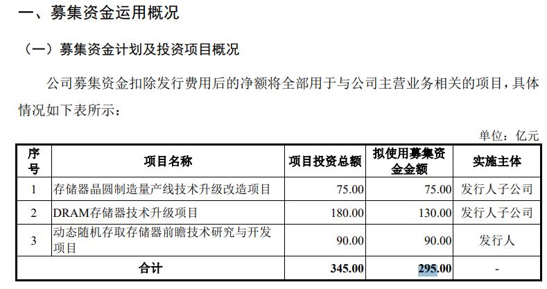 长鑫科技在招股书中透露,IPO拟发行不超过106.22259999亿股股票;扣除发行费用后,募集资金中的75亿元计划用于“存储器晶圆制造量产线技术升级改造项目”,130亿元用于“DRAM存储器技术升级项目”,90亿元用于“动态随机存取存储器前瞻技术研究与开发项目”。