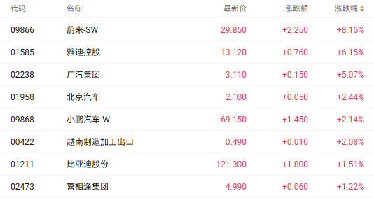 蔚来受利好消息刺激 股价领涨相关个股