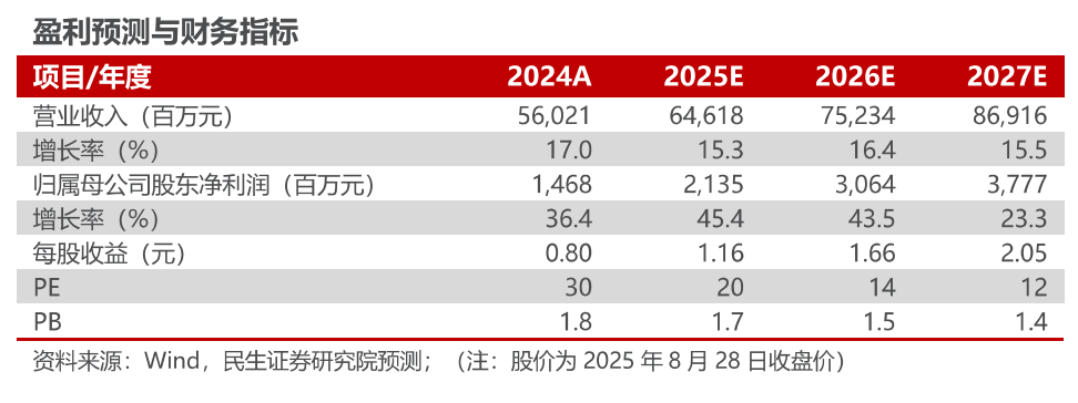 A)事件:25年8月27日,公司发布2025年半年报。25年H1实现营收269.85亿元,同比增长12.82%;实现归母净利润8.56亿元,同比增长3.88%;扣非后归母净利润5.83亿元,同比减少28.03%。
