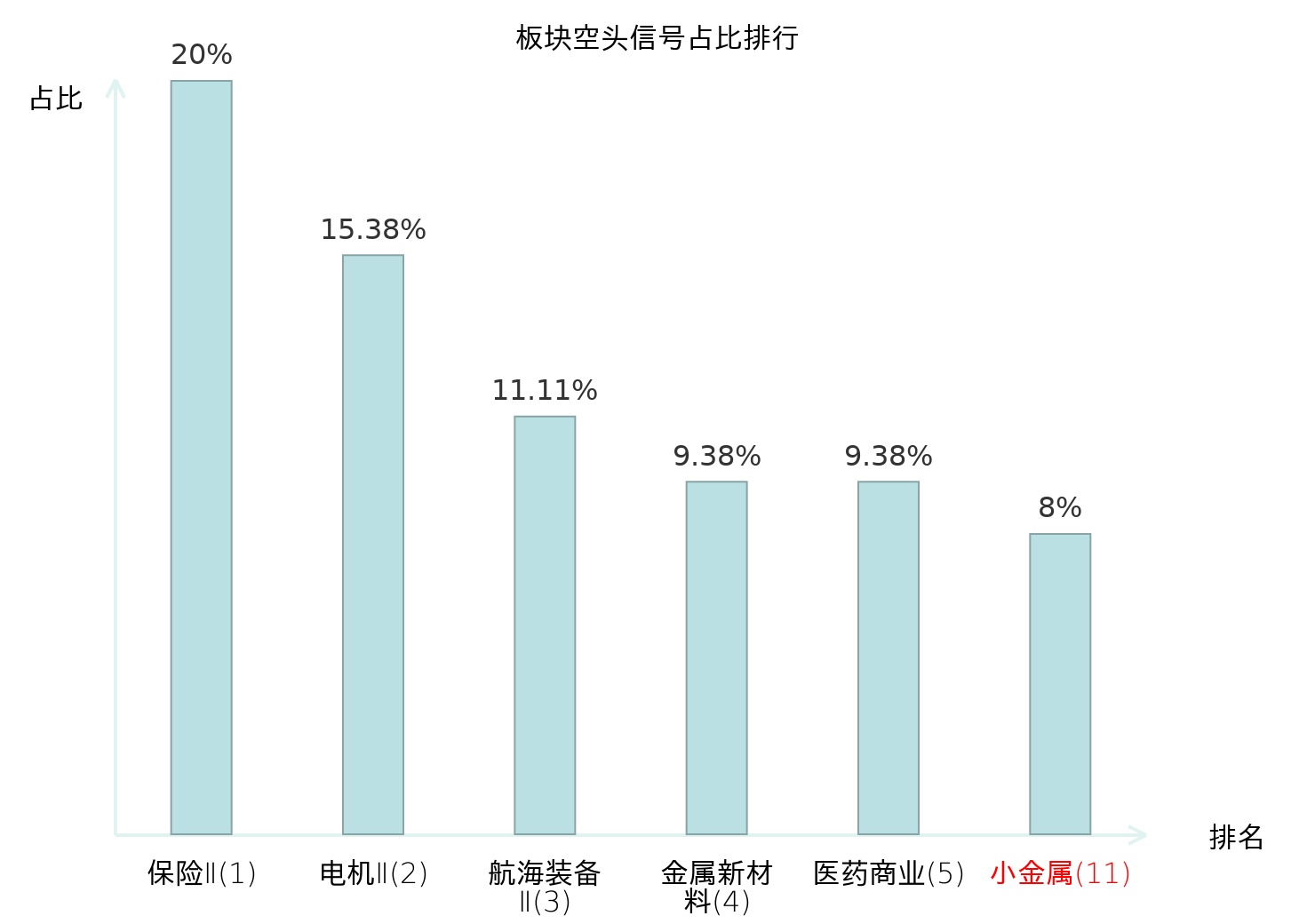 全市场所有行业板块中主力空头信号占比排名中,保险Ⅱ板块位居第一。塑料板块名次提升最快,较昨日上升111位。