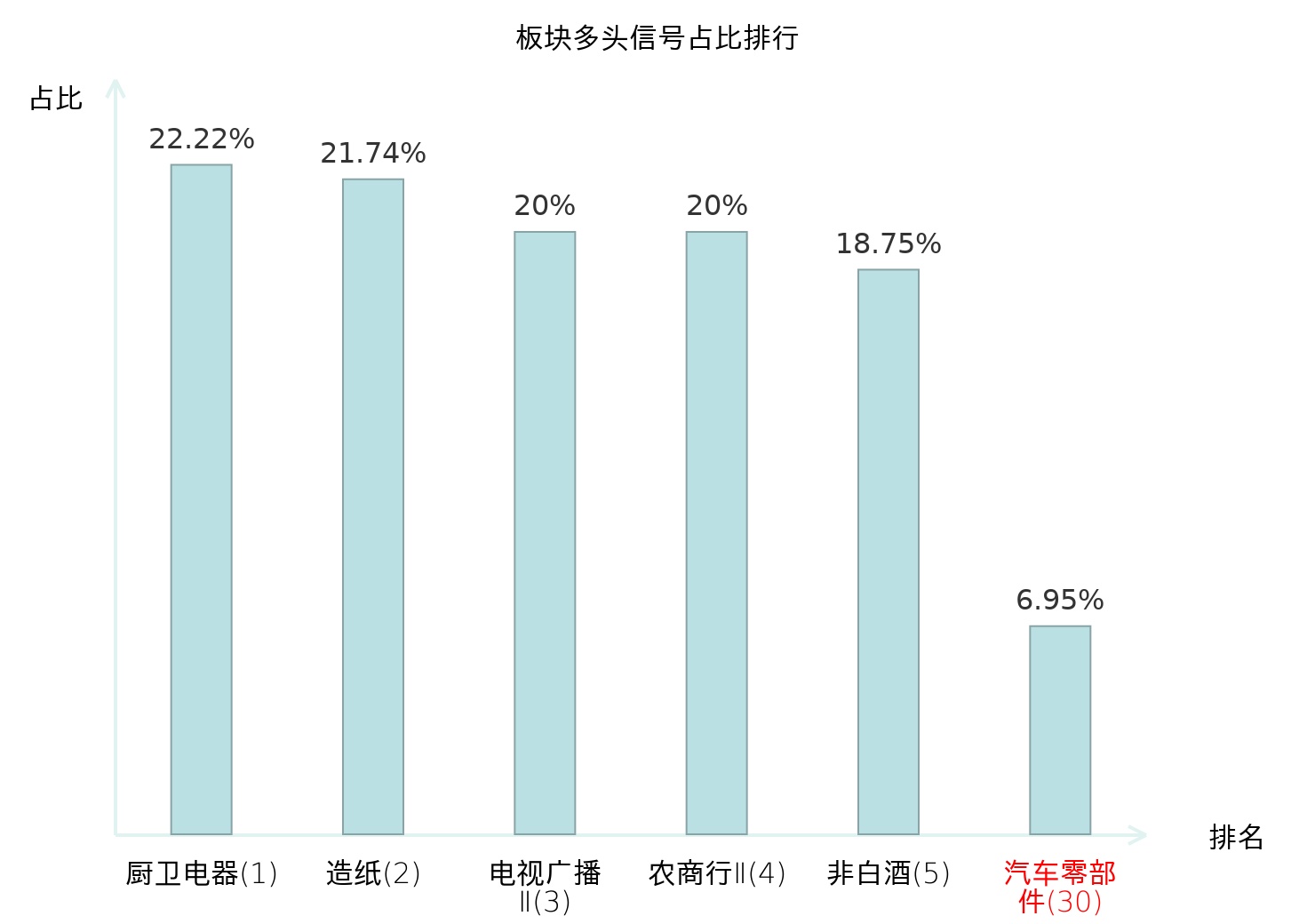 从主力宝信号数据分析,斯菱智驱所属的汽车零部件板块中共有18只股票发出主力多头信号,主力多头信号占比在全行业中排名第30位,较昨日上升33位。排名上升表明主力对汽车零部件板块的买入意愿增强,这为投资者提供了观察市场情绪和潜在投资机会的重要参考。全市场所有行业板块中,主力多头信号占比排名中,厨卫电器板块位居第一,名次提升最快,较昨日上升115位。这些变动揭示了主力资金在不同行业间的偏好调整,为投资者理解当前市场的动态和趋势提供了依据。