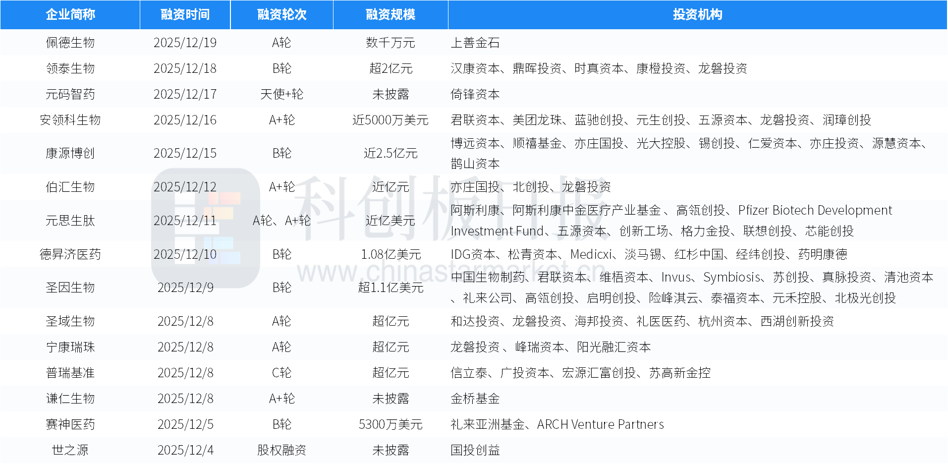 创投通数据显示,近一年来,国内创新药领域部分获投案例如下。