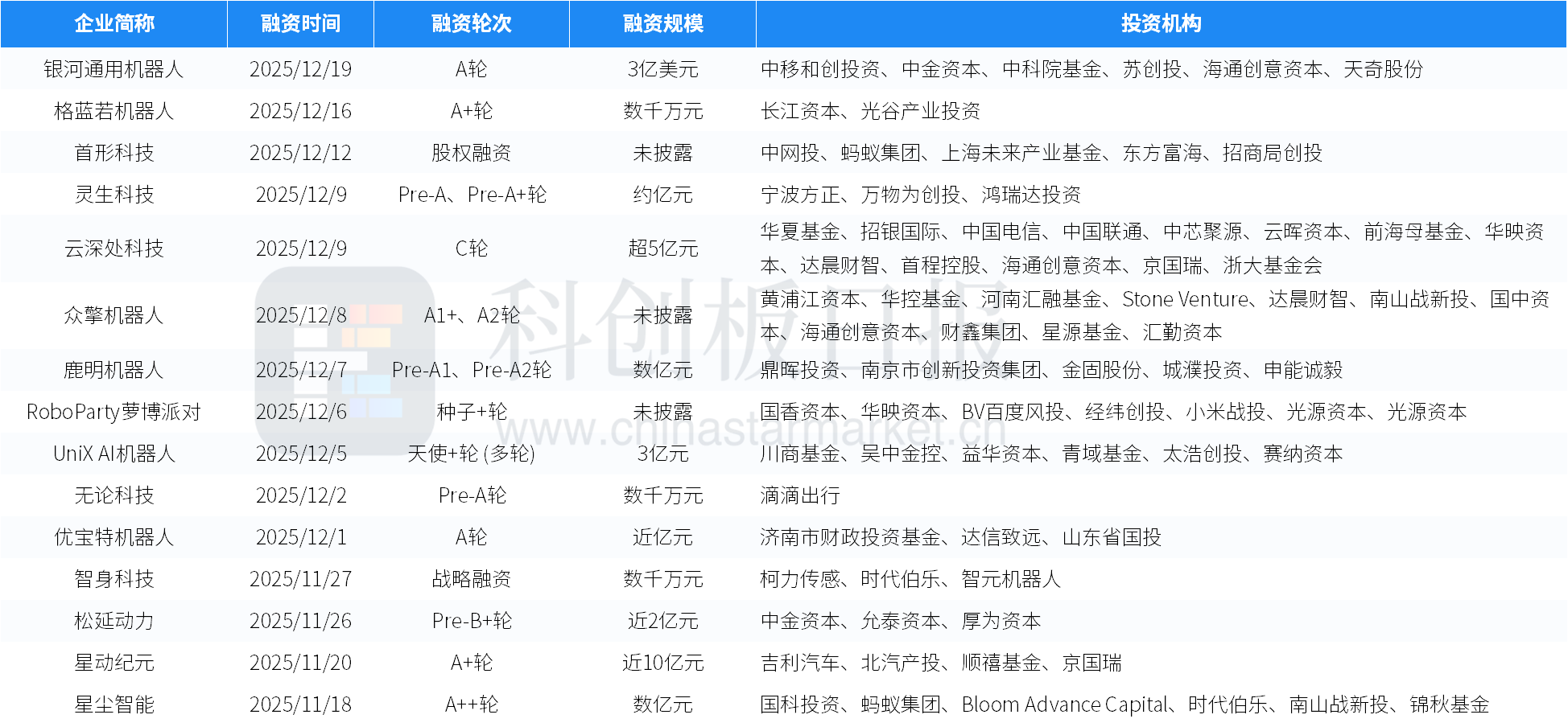 创投通数据显示,近一年来,国内人形机器人领域部分获投案例如下。