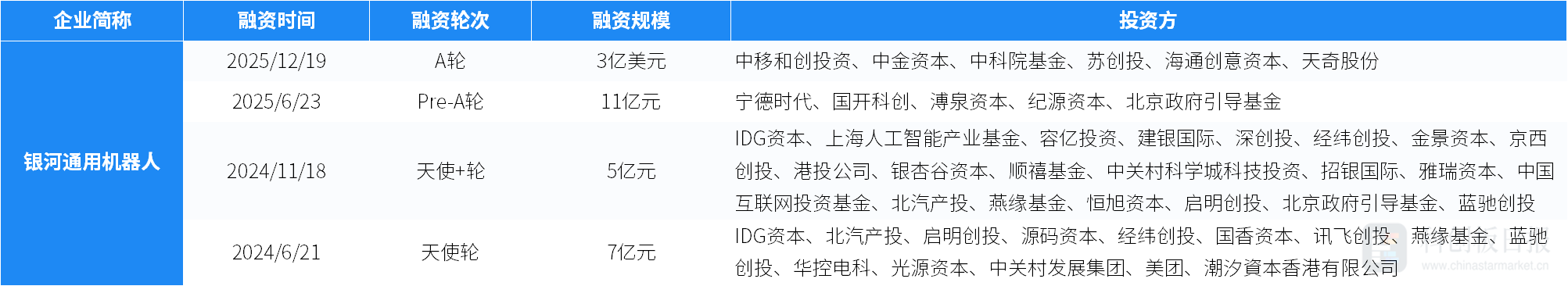 根据财联社创投通—执中数据,以2025年12月为预测基准时间,银河通用机器人后续2年的融资预测概率为51.41%。