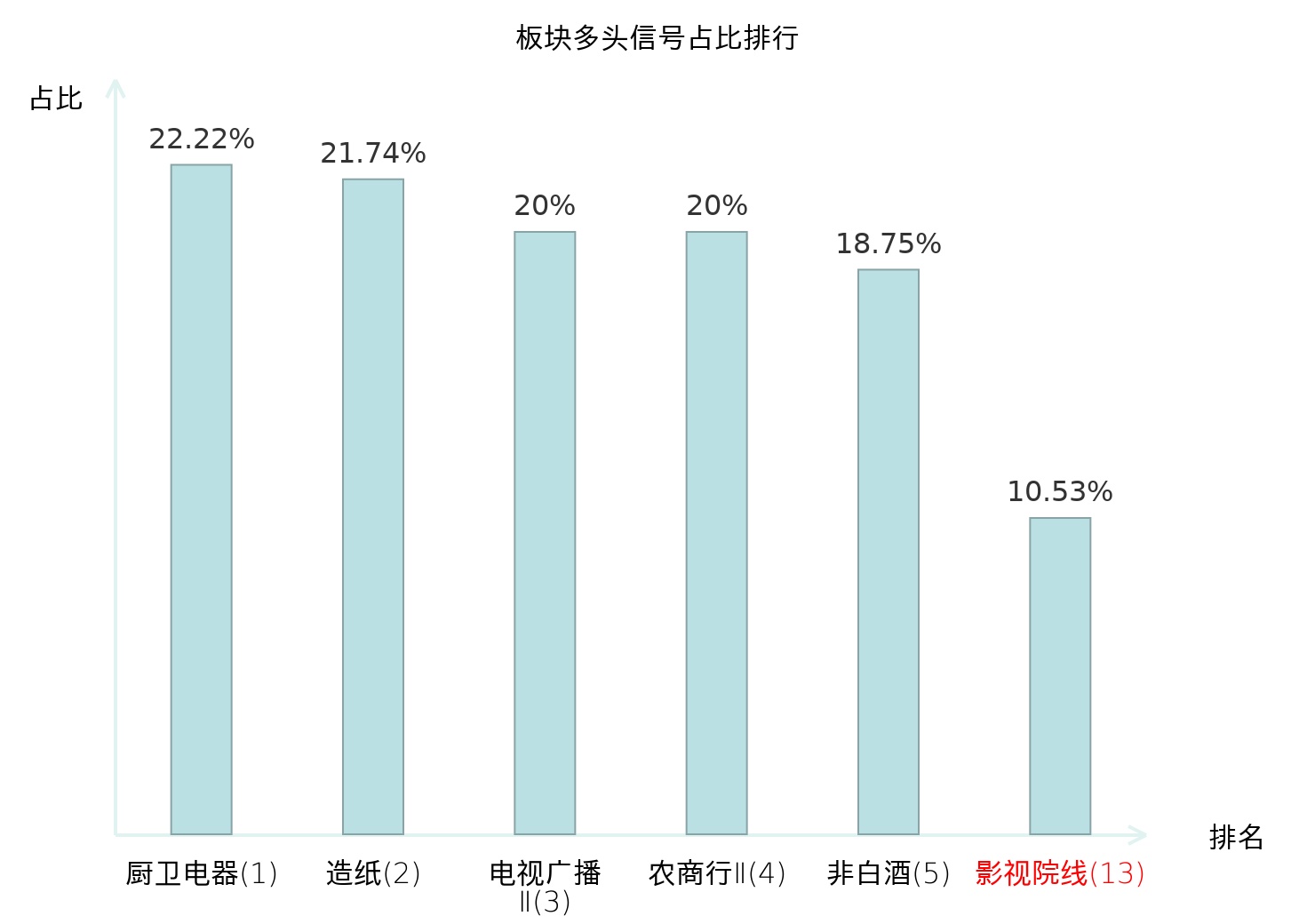 从主力宝信号数据分析,金逸影视所属的影视院线板块中共2只股票发出主力多头信号,主力多头信号占比在全行业中排名第13位,较昨日上升78位。排名上升表明主力对该板块的买入意愿增强,对投资者而言,这可能反映了市场对该板块未来的看好趋势。全市场所有行业板块中,主力多头信号占比排名中,厨卫电器板块位居第一,较昨日上升115位。这些变动揭示了不同行业间主力资金动向的变化,有助于投资者理解当前市场的动态和趋势。