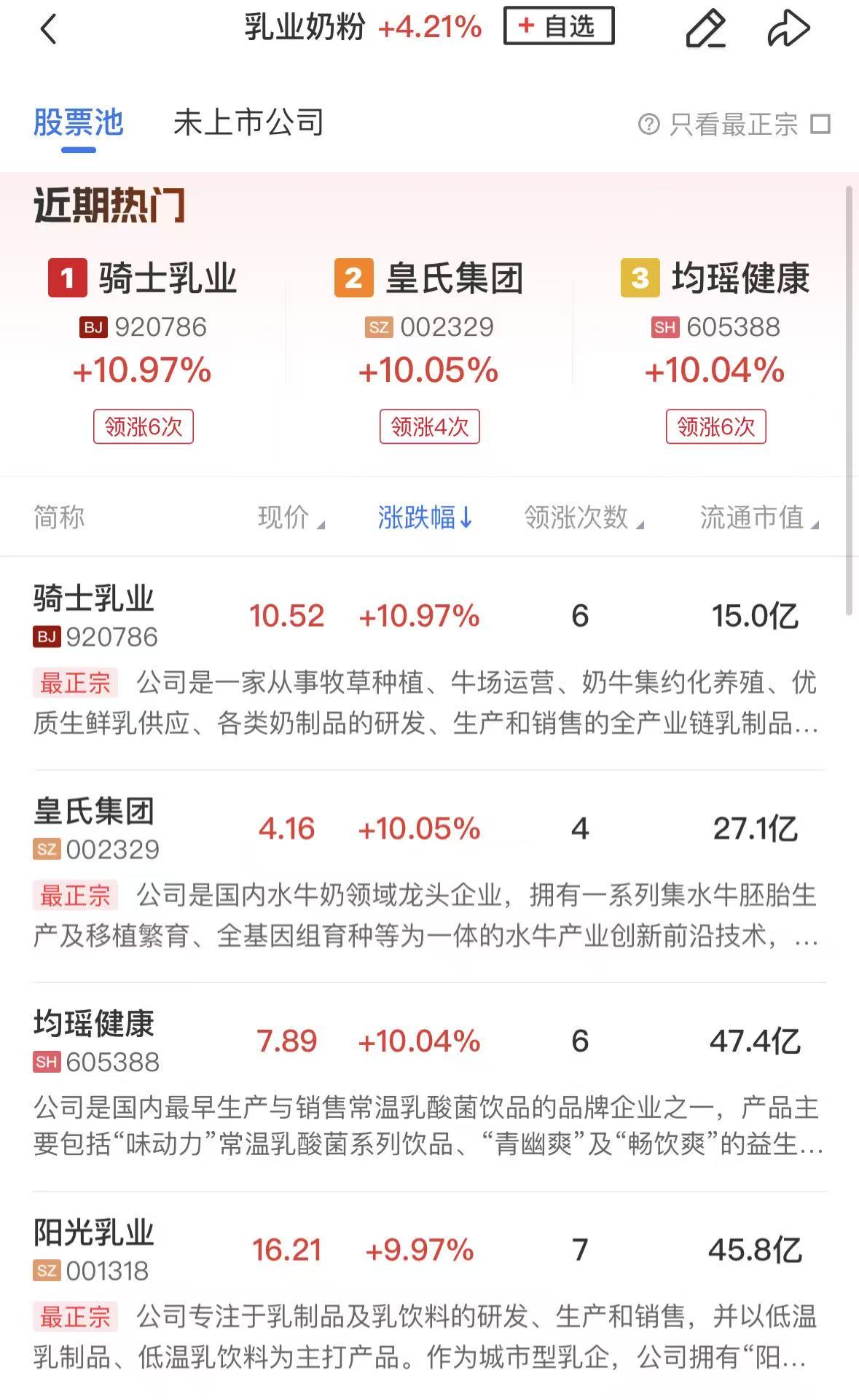 大消费板块全线走强,乳业、白酒等食品饮料方向涨幅居前,欢乐家、皇氏集团、均瑶健康、阳光乳业等涨停,贝因美、熊猫乳品、李子园等涨幅居前。
