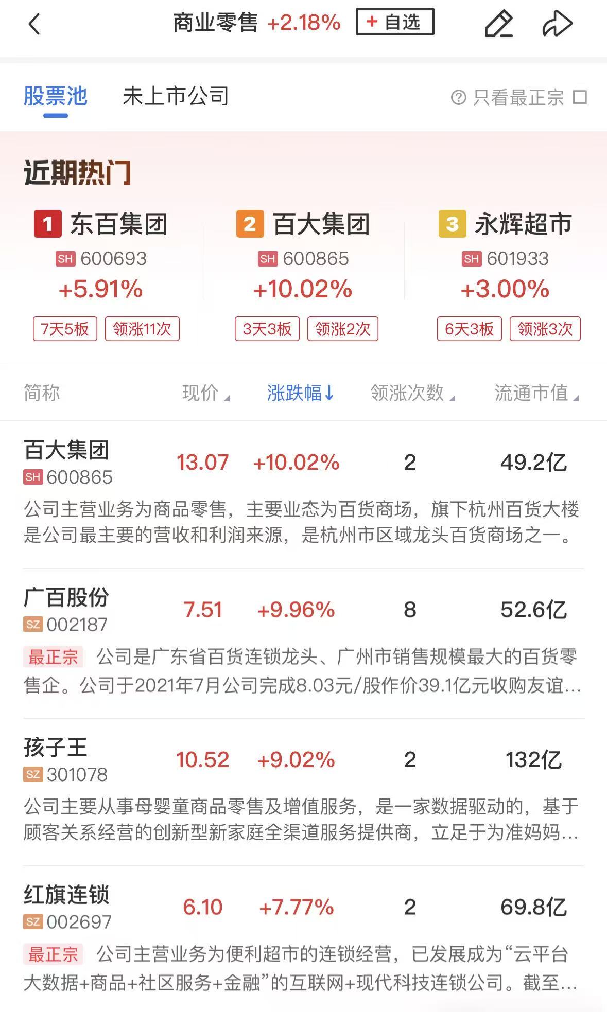 零售表现强势,百大集团3连板,浙江东日、农产品、全新好、广百股份涨停,孩子王、红旗连锁、赫美集团等个股涨幅居前。