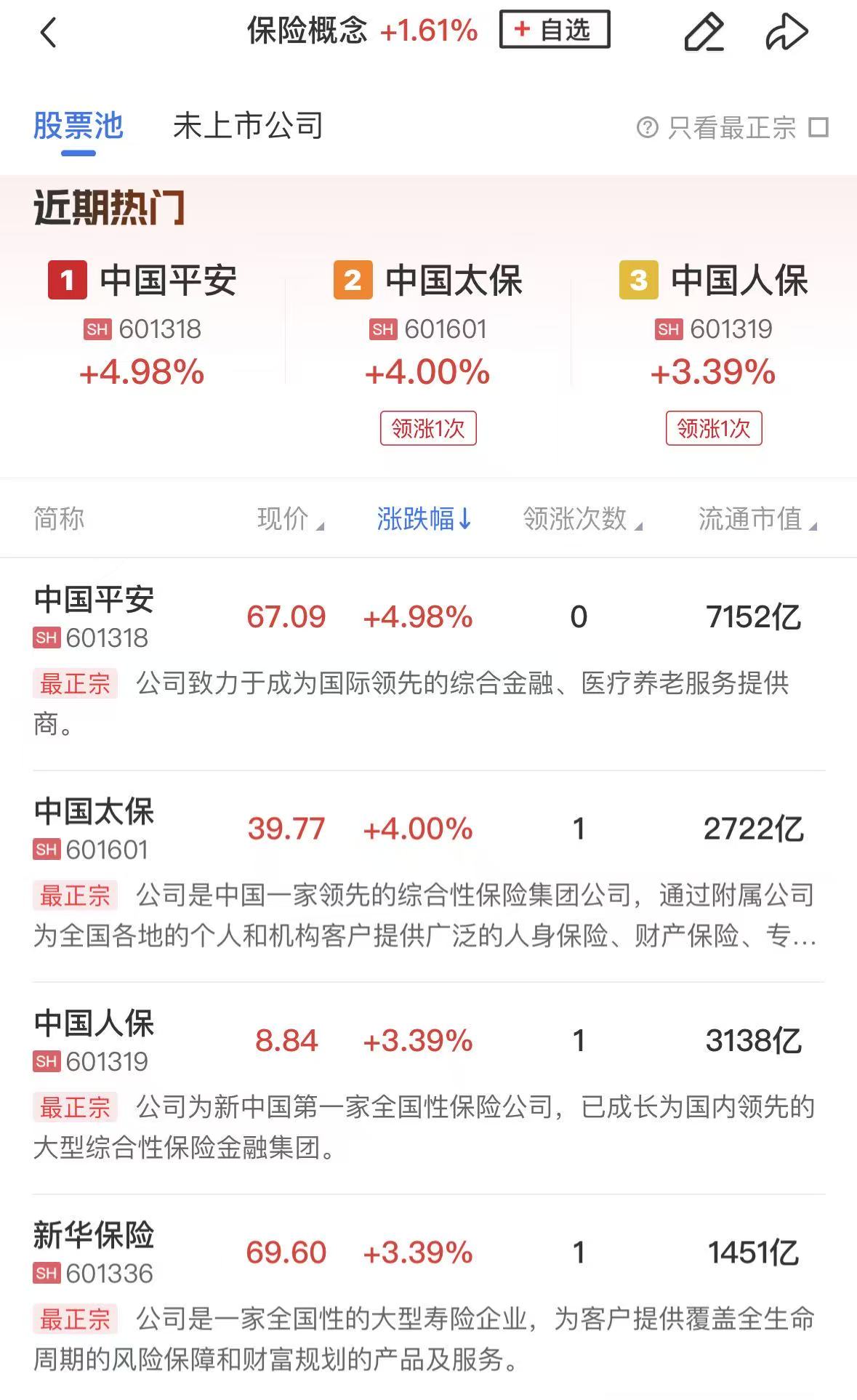 板块上,保险板块领涨,中国平安涨近5%创四年多新高,中国太保、新华保险、中国人保、中国人寿跟涨。消息面上,日前金融监管总局发布《关于调整保险公司相关业务风险因子的通知》,对保险公司投资沪深300指数成分股、中证红利低波动100指数成分股以及科创板股票的风险因子进行下调。