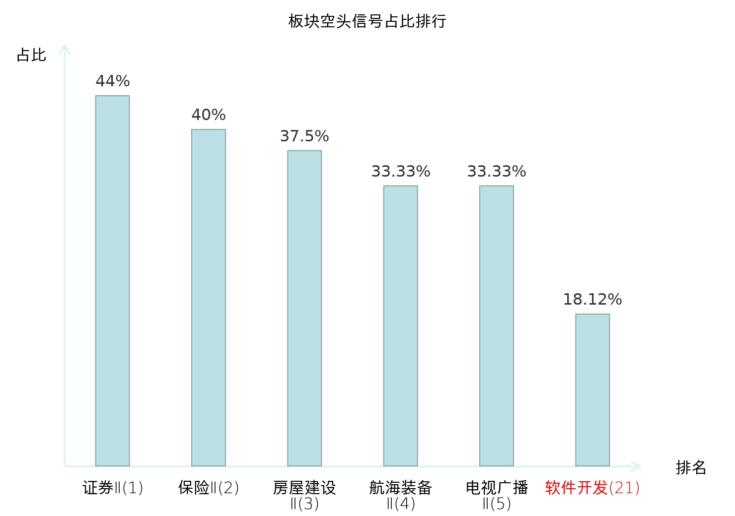 全市场所有行业板块中主力空头信号占比排名中,证券Ⅱ板块位居第一。证券Ⅱ板块名次提升最快,较昨日上升125位。
