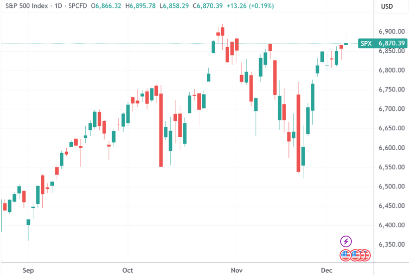 在市场对降息预期高企的背景下,克拉考尔并不认为这次降息会在跨年期间成为推动股市进一步上涨的催化剂。话虽如此,他仍然认为市场有足够的基础迎来一些涨幅,至少可以推动标普500指数创下新高。