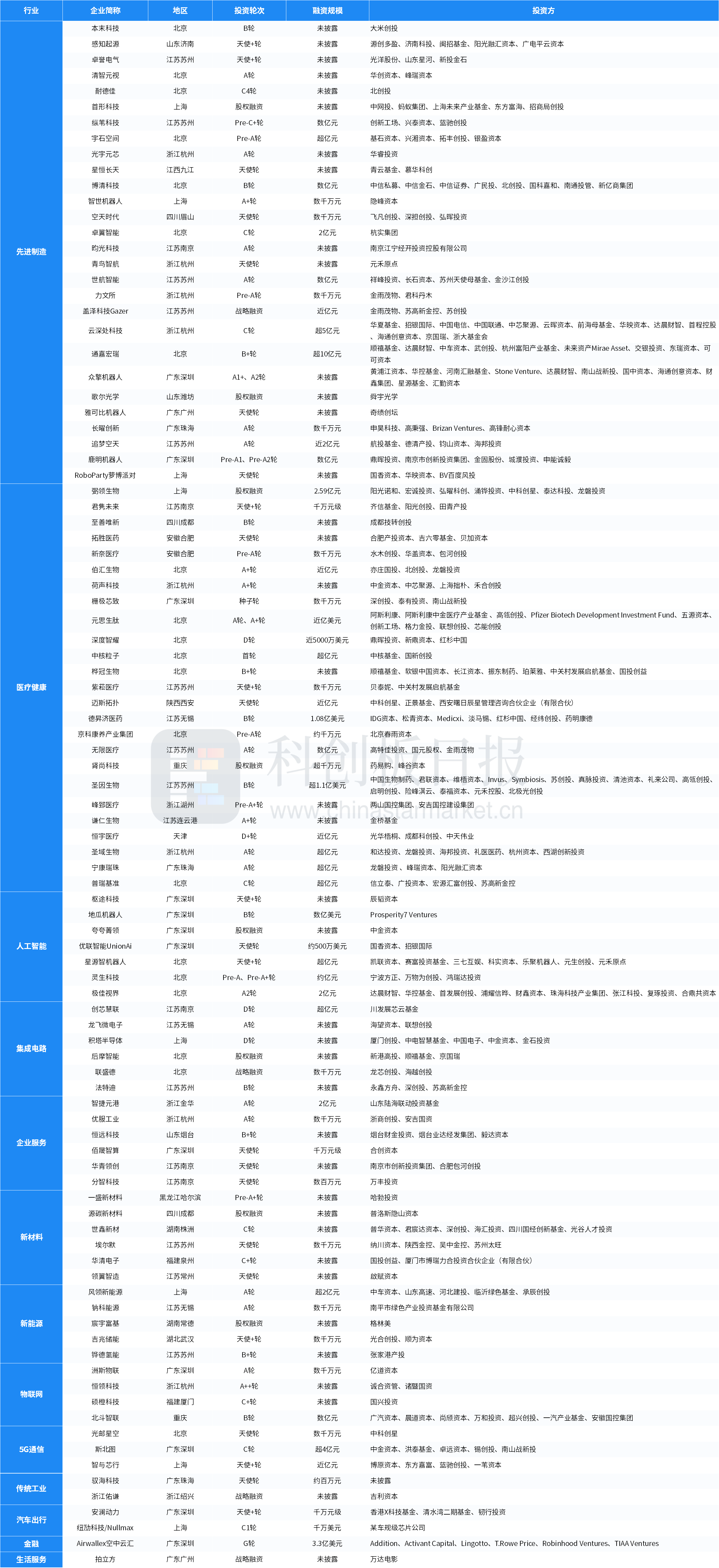从投资事件数量来看,本周先进制造、医疗健康、人工智能、集成电路、新材料、企业服务等领域较活跃;从融资总额来看,医疗健康披露的融资总额最多,约37.17亿元。Airwallex空中云汇完成由Addition 领投, T. Rowe Price、Activant、Lingotto、Robinhood Ventures和TIAA Ventures 共同参与的3.3亿美元G轮融资,为本周披露金额最高的投资事件。