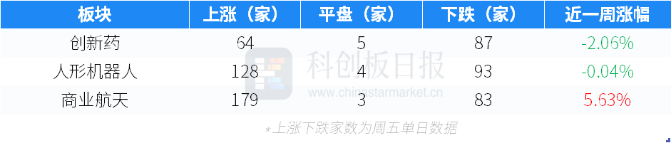 作为对比,本周创新药、人形机器人、商业航天二级市场表现如下表所示。