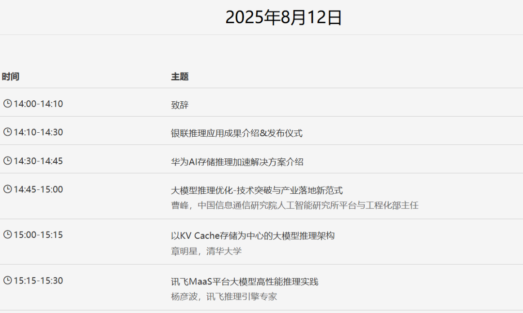 同时,来自信通院、清华大学和科大讯飞的专家,将在8月12日召开的“2025金融AI推理应用落地与发展论坛”上,分享大模型推理加速与体验优化的实践。