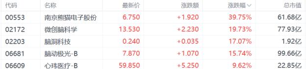 脑机接口概念大爆发,南京熊猫电子飙升近40%,微创脑科学大涨近20%,脑洞科技大涨超17%。消息面上,马斯克在社交媒体上表示,其脑机接口公司Neuralink将于2026年开始对脑机接口设备进行“大规模生产”。开源证券认为,Neuralink的规模化生产预期+自动化手术方案,以及Merge布局新一代超声波脑机接口技术标志着脑机接口从临床验证阶段开始向商业化规模化阶段迈进。
