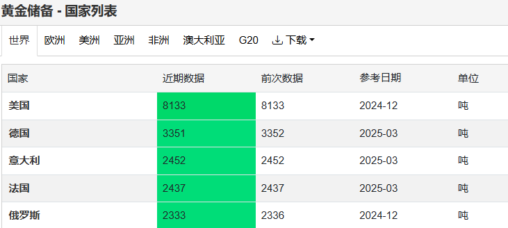 翻看全球主要黄金储备国的排行榜,人们其实不难发现一个很有意思的现象: