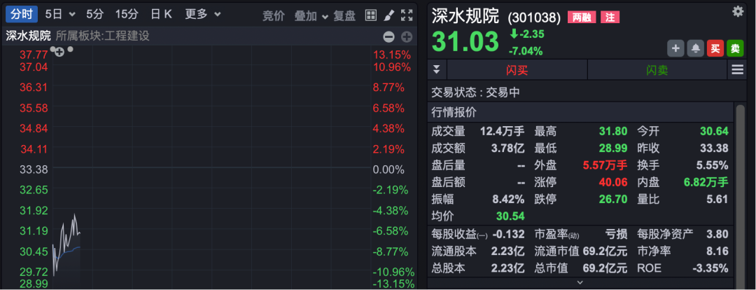 雅下水电概念股多数低开。深水规院一度跌超10%,基康技术、中设股份、铁建重工、设研院纷纷跟跌。