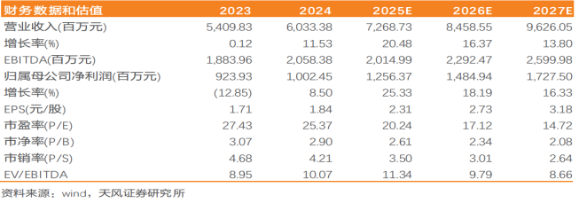公司产品广泛应用于消费类电子、安防、工控、汽车电子、新能源等领域,随着下游应用需求复苏带动公司业务增长。我们预计公司2025~2027归母净利润分别为12.56、14.85、17.28亿元。可比公司方面,根据wind一致预测,25年平均PE为29.8倍,给予公司28倍PE,对应