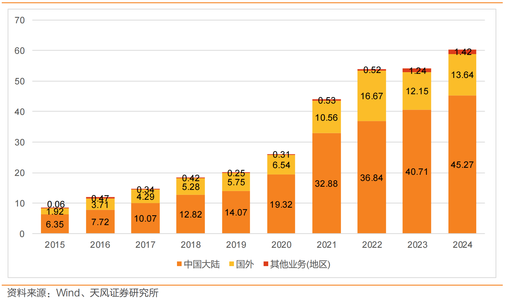 图表3:公司营业收入按照地区拆分(单位:亿元)