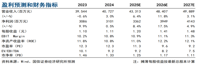 上调盈利预测,维持“优于大市”评级。考虑到公司新增产能主要在2025年底陆续投产,看好2026年业绩弹性。上调盈利预测,预计2025-2027年归母净利润33.6/39.5/41.4亿元(前值32.9/39.2/-亿),同比增速8.4%/17.5%/4.9%,当前股价对应PE=11/10/9倍。公司显现出周期底部蓄力向上的特性,维持“优于大市”评级。