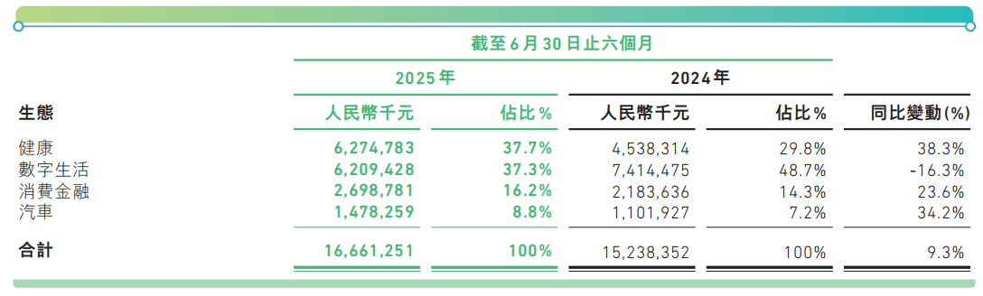 上半年,众安的健康、数字生活、消金、汽车生态板块保费贡献率分别为37.7%、37.3%、16.2%、8.8%,尤其健康与汽车板块均出现收入的大幅增长。