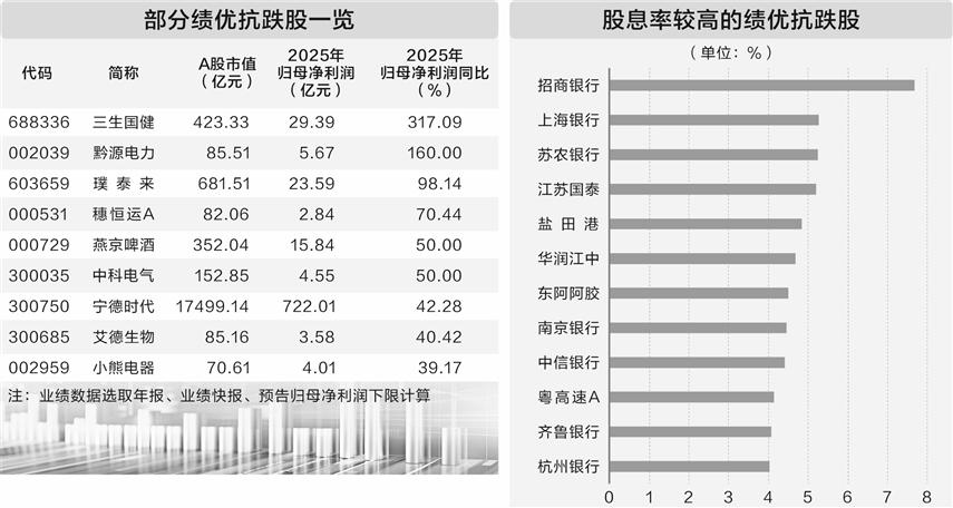 证券时报·数据宝根据以下三个标准,筛选出具备抗跌属性的绩优标的:一是截至3月24日收盘,最新收盘价较年内高点回撤不足10%;二是截至3月24日收盘,滚动市盈率低于30倍;三是按照2025年年报、业绩快报、预告归母净利润下限(若无下限则取公告数值)计算,2025年归母净利润为正且同比增长(含扭亏为盈)。