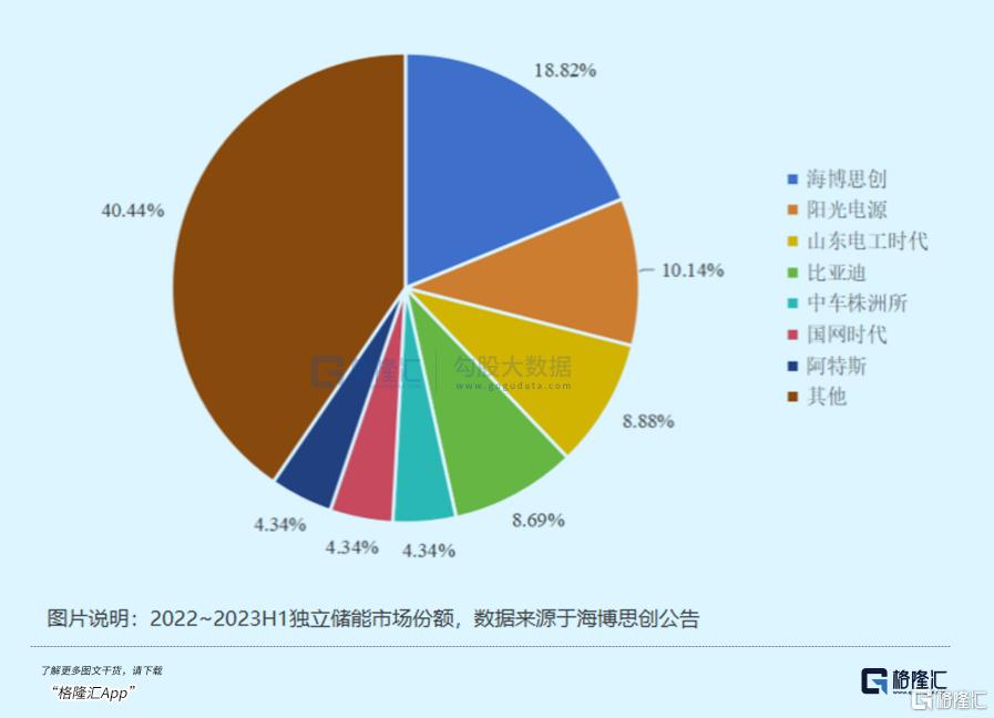 随着国内电网侧储能需求的萌芽,公司切入系统集成领域,通过整合优质电芯资源与自身控制技术,迅速获得国家电网、南方电网等核心客户的认可。根据公司《IPO审核问询函的回复》,2022-2023H1,海博思创在电网侧独立储能市场的市场份额约18.82%,排名国内第一。