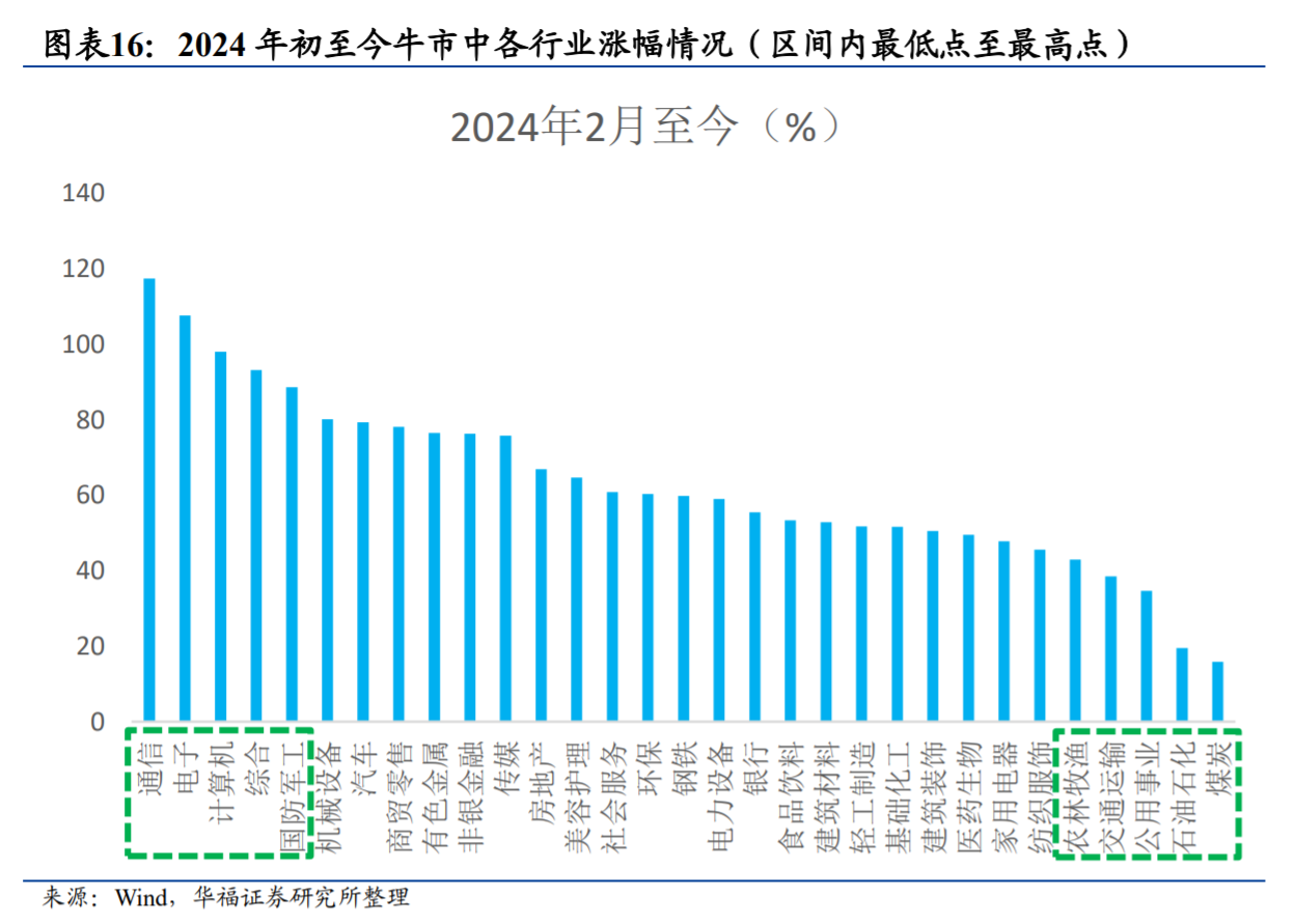 维度八:从行业维度上看,有些行业是牛市的常客,有的行业表现则相对一般。同时,不同时期的牛市领涨行业,往往也会反映当时产业趋势的发展变化,也很有借鉴意义。