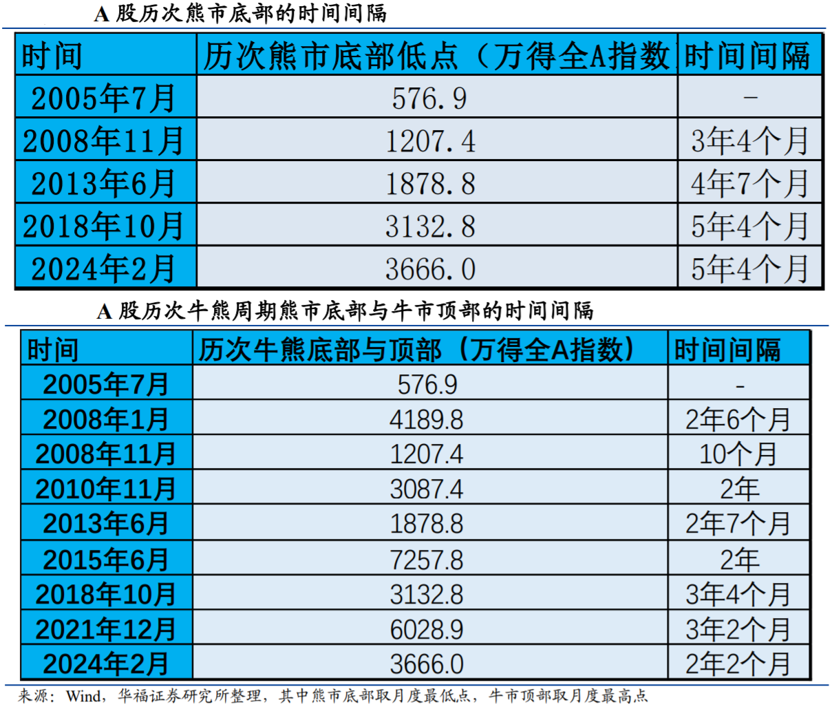 维度三:A股其实存在着比较明显的周期性规律。2001年以来,A股大概经过了四轮牛熊周期,目前正在进行第五轮牛熊周期。从时间长度看,A股的牛熊周期一般会经历3-5年,最短的是3年4个月,最长的是5年4个月,平均为4年7个多月。