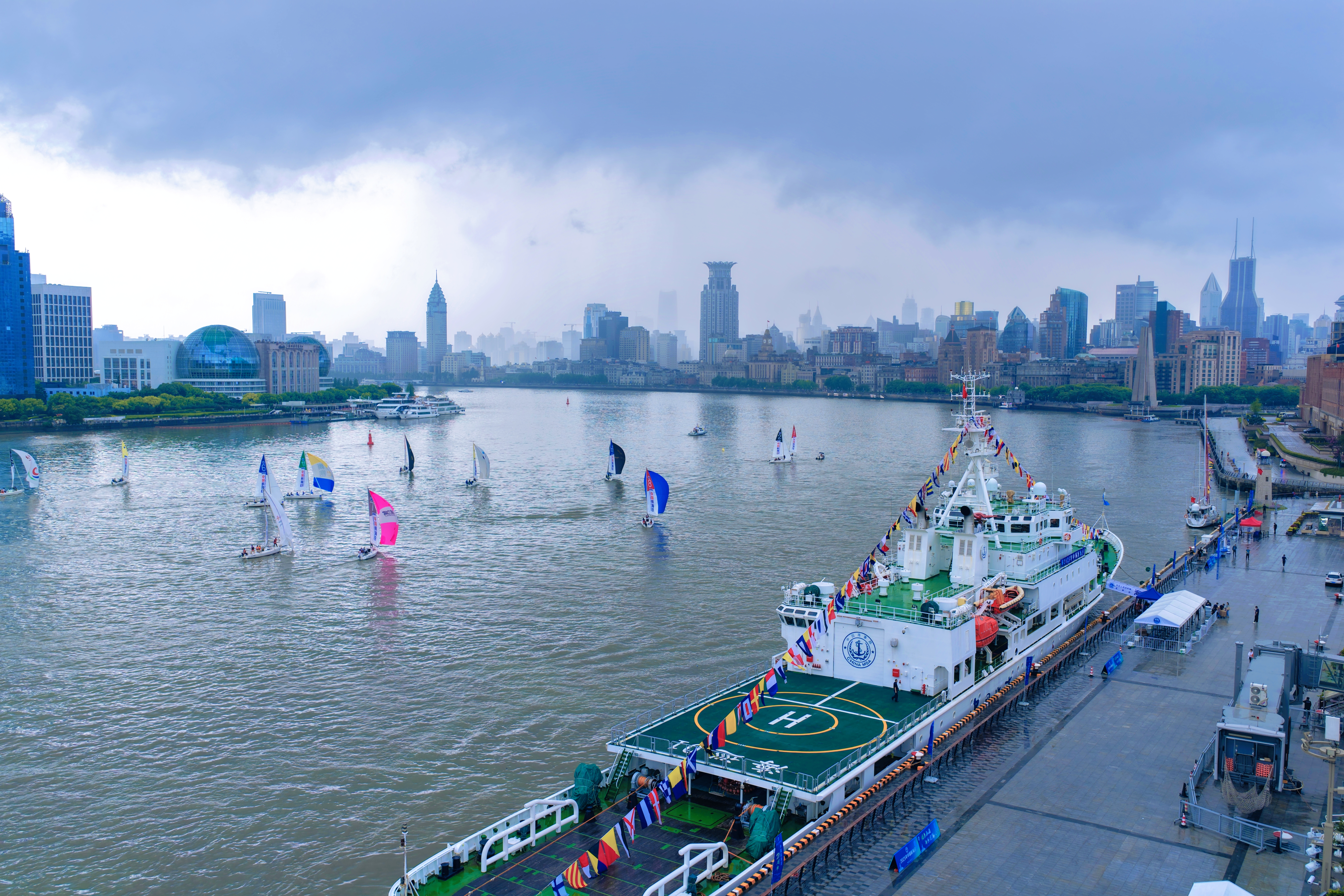传统特色活动——帆船展示继续在黄浦江国客中心段水域举行。黄浦江上帆影点点,市民游客驻足观看,领略拼搏进取的航海精神,感受上海向海而兴的城市底蕴。
