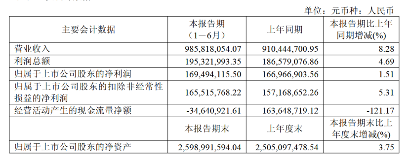 财报显示,云路股份2025年上半年实现营业收入9.86亿元,同比增长8.28%;归母净利润 1.69亿元,同比增长1.51%;扣非净利润1.66亿元,同比增长5.31%。