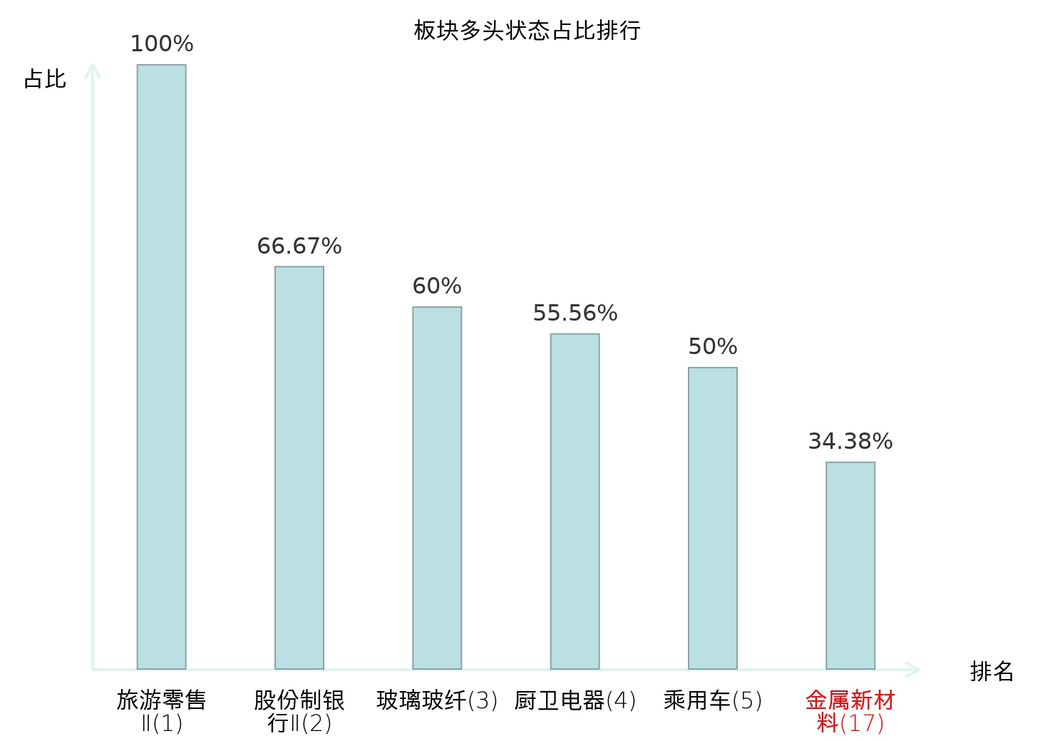 从主力宝信号数据分析,有研粉材所属的金属新材料板块中共11只股票处于主力多头状态,主力多头状态占比在全行业中排名第17位,较昨日上升2位。排名的上升表明主力对该板块整体看多意愿增强,为投资者提供了积极的市场情绪参考。全市场所有行业板块中主力多头状态占比排名中,旅游零售Ⅱ板块位居第一;航天装备Ⅱ板块名次提升最快,较昨日上升了91位。这些变动揭示了主力资金在不同行业间的偏好变化,有助于投资者理解当前市场的动态和趋势。